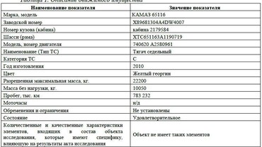 Тягач седельный КАМАЗ 65116, год выпуска 2010 ( Текущее состояние объекта – удовлетворительное. Присутствуют следы поверхностной коррозии, повреждения ЛКП, вмятины) с полуприцепом автомобильным НЕФАЗ 9334; год выпуска 2010 (Текущее состояние объекта – удовлетворительное. Присутствуют следы коррозии, загрязнения, ржавчины, повреждения ЛКП, вмятины)